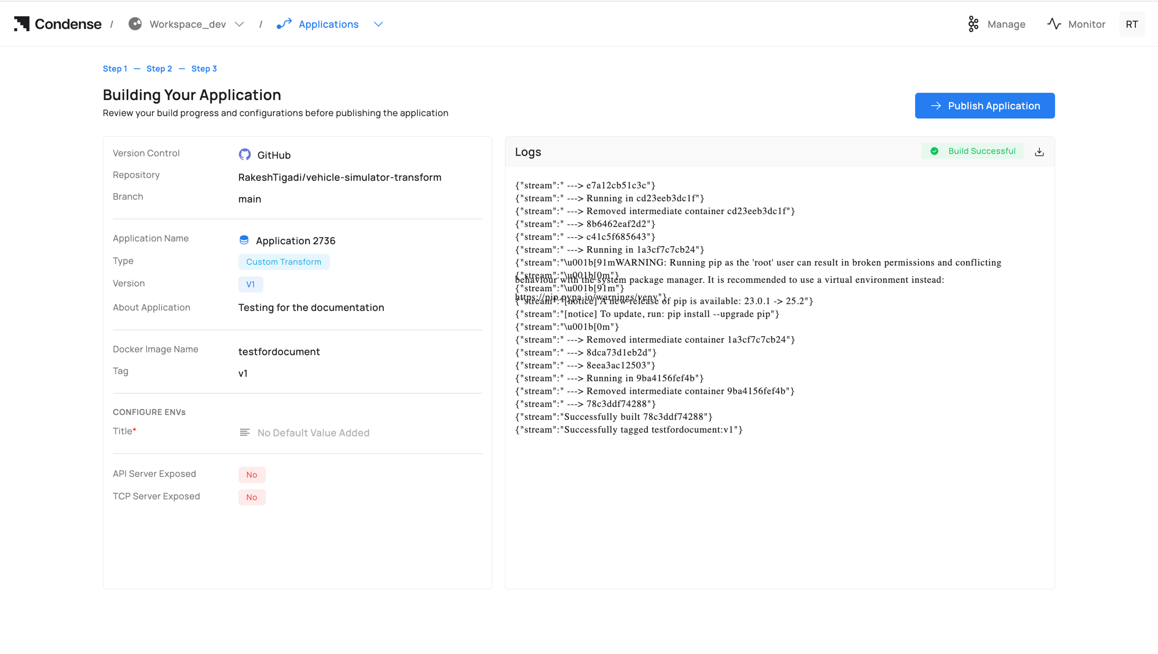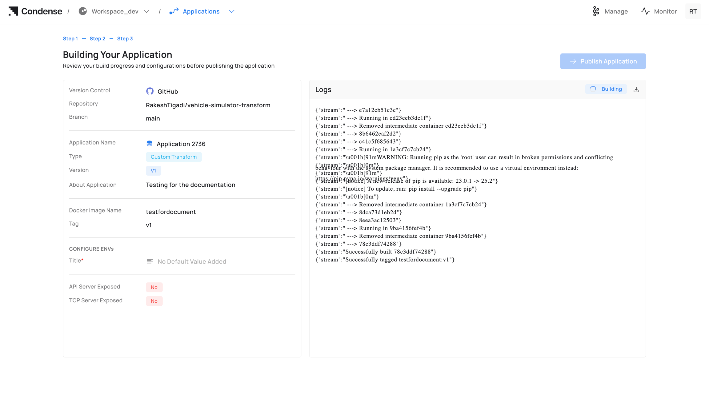 Click Publish Application.