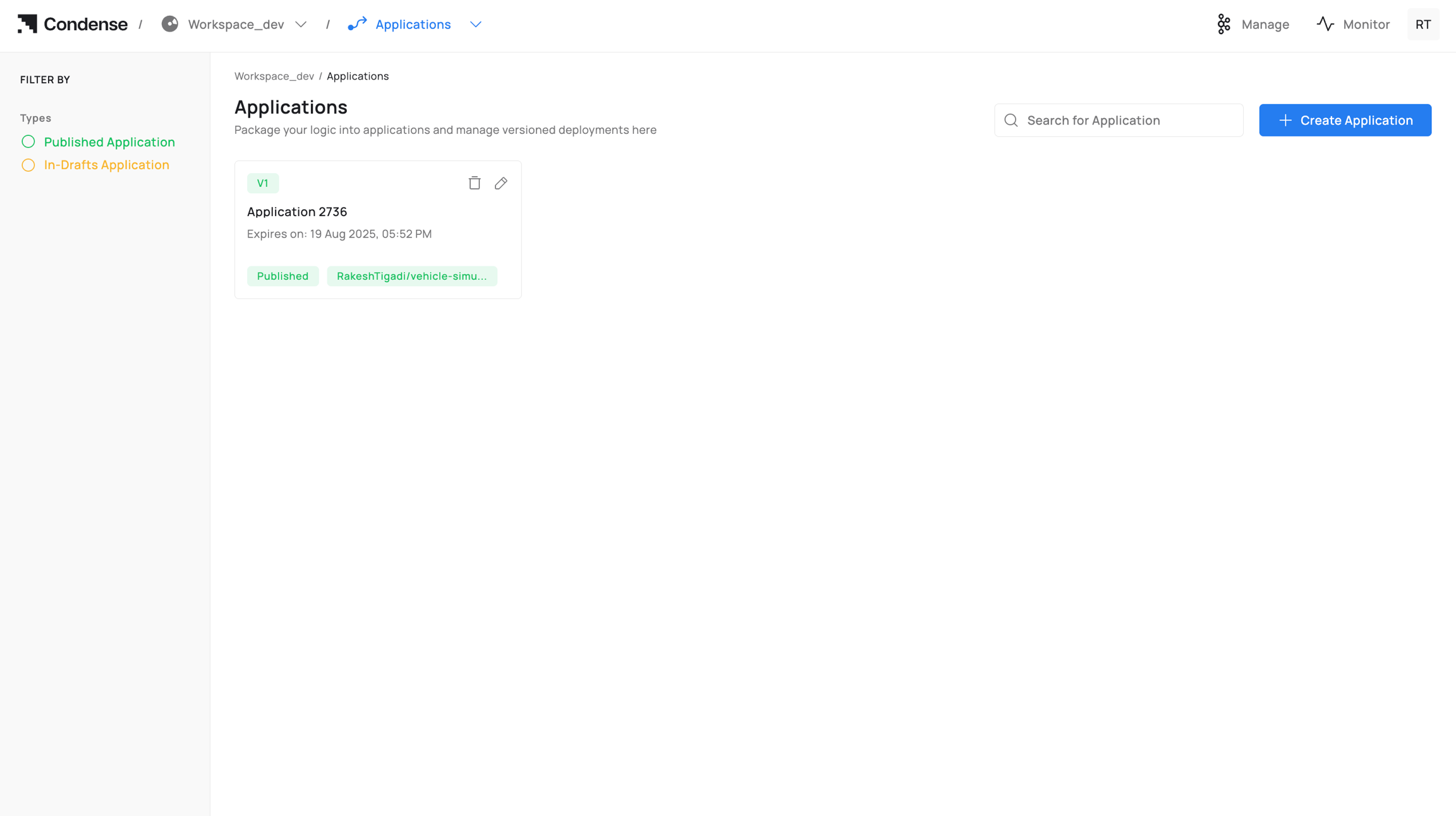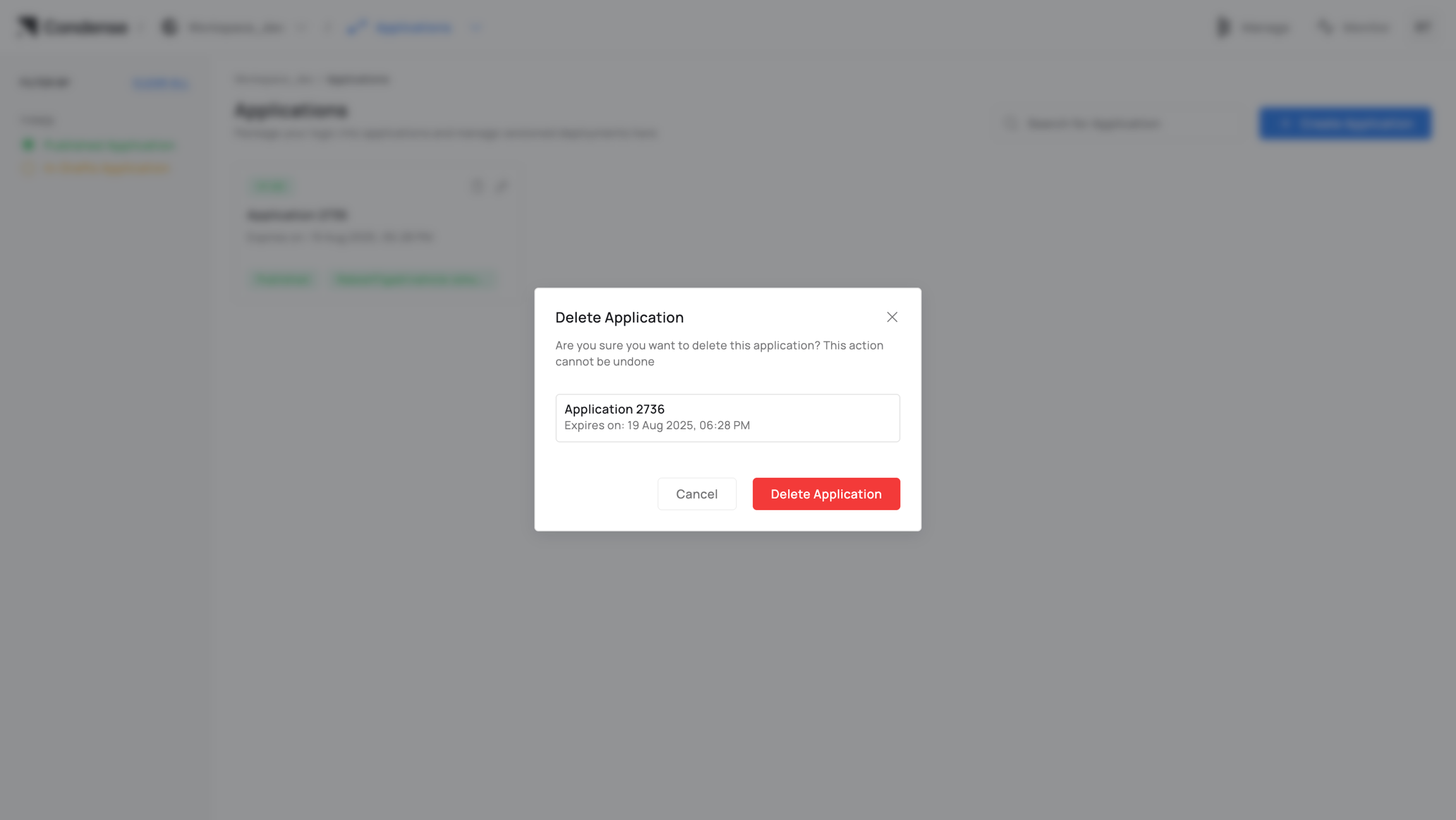Delete drafts or published Applications (role‑gated; irreversible in Condense).