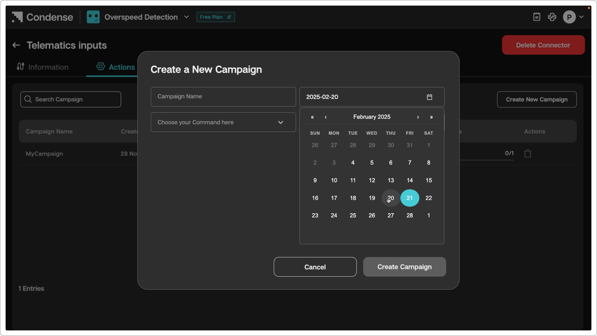 A Campaign is a targeted workflow designed to manage and execute tasks for telematics devices within a specified timeframe. Campaigns enable users to send commands to devices and monitor the progress of the campaign in real time.