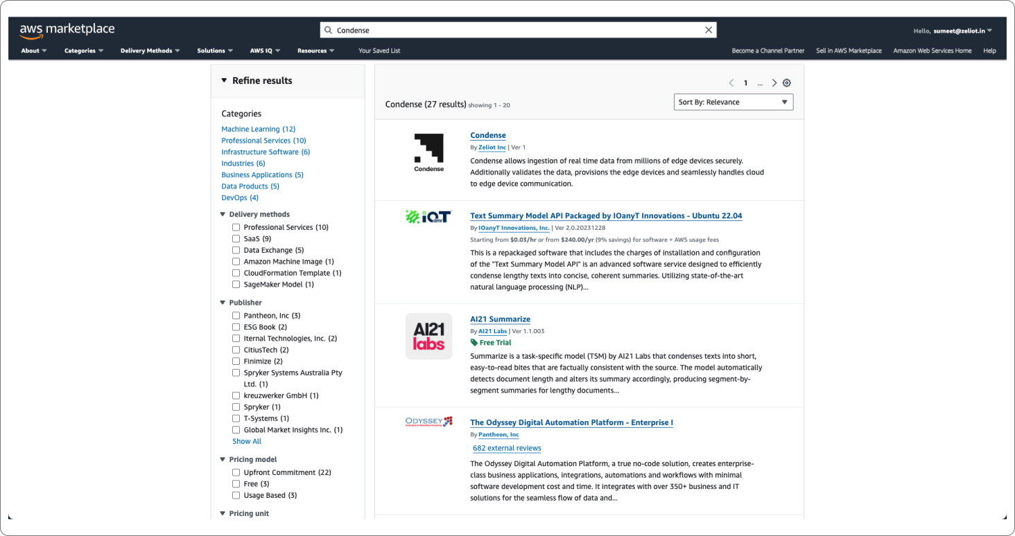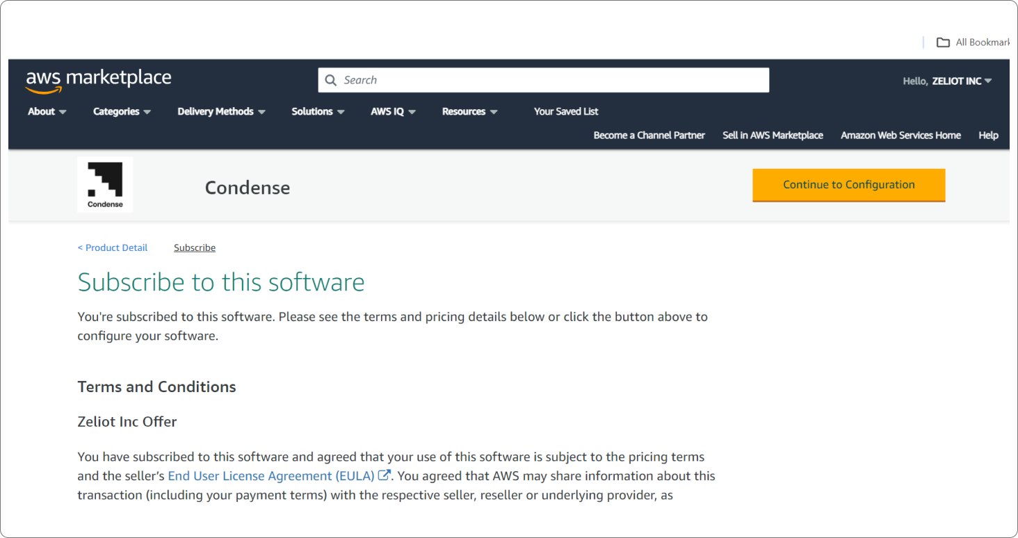 Step 1: Visit the Amazon Web Services Cloud Marketplace and search for Condense