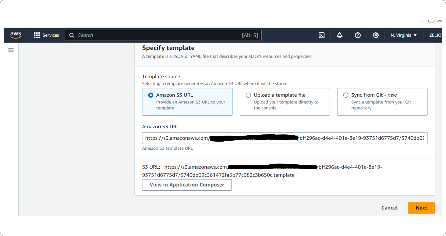 Step 5: CloudFormation is used to deploy the condense using IaC (cloud formation YAML template), which is fetched from the S3 URL.